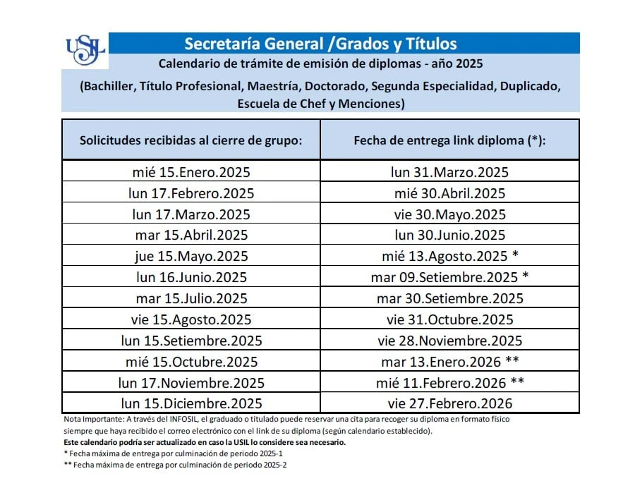 Enviar una Fotografía al correo: tramites_diplomas@usil.edu.pe con las siguientes características: