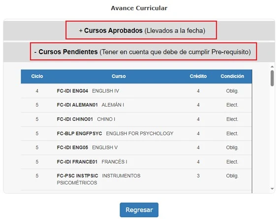 ➡ PASO 2: Revisa el detalle de tus cursos aprobados y pendientes a la fecha