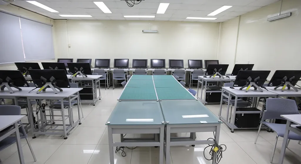 Laboratorio de cómputo tecnología Windows con las últimas versiones de softwares de diseño para ilustración, animación, diseño multimedia, diseño gráfico y 3D. Especializado para ilustración digital que permite trabajar sobre la propia pantalla. Las pantallas WACOM permiten una precisión profesional de acabado de trabajos que hacen las ilustraciones muy reales.